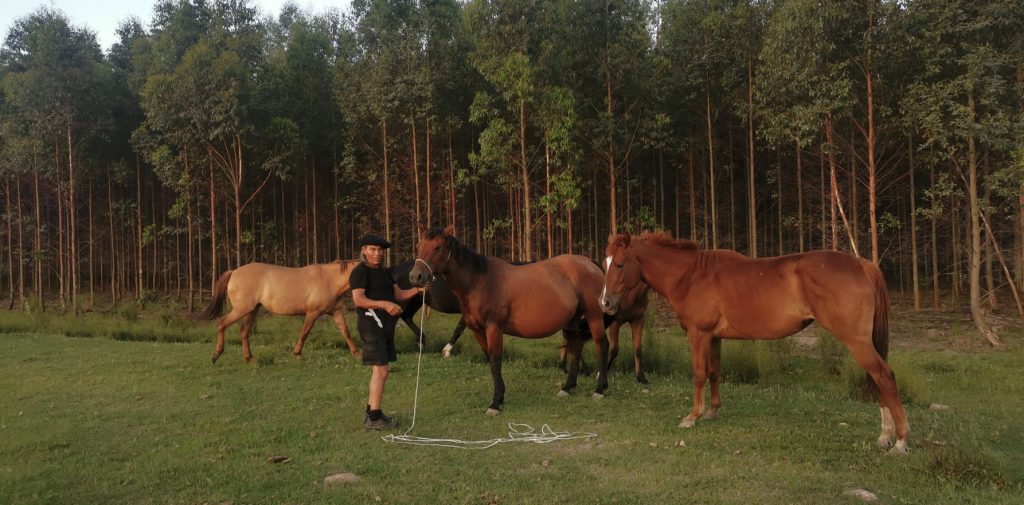 Desde mi infancia, la doma de caballos ha sido una pasión heredada de mi padre y abuelo, quienes eran maestros en la doma tradicional. En aquellos tiempos, las prácticas eran distintas, y fue en ese entorno donde absorbí los fundamentos de esta disciplina. Con el tiempo, mi percepción sobre la capacidad de aprendizaje y sensibilidad de estos seres magníficos se profundizó, revelándome una inteligencia y empatía posiblemente más refinadas que las nuestras. En mis años jóvenes, enfrenté el desafío de domar entre 20 a 30 caballos simultáneamente, lo cual era extenuante y a menudo, un combate de voluntades. Esto me llevó a buscar un enfoque alternativo, basado en el respeto, la amistad y un trato gentil, consciente de que la comunicación efectiva entre especies exige una disposición abierta y amorosa, incluso cuando nos resulta difícil ofrecer ese mismo nivel de atención y afecto dentro de nuestro círculo familiar. A los 16 años, mi atención se dirigió hacia caballos en las estancias que sufrían, debido al descuido y los malos tratos anteriores. Se me concedió la oportunidad de trabajar con ellos, explorando los errores pasados para hallar soluciones que restauraran su confianza. Descubrí que la paciencia, la nutrición adecuada, el tiempo y un trato amable —evitando el miedo y los gritos— eran fundamentales. Me esforcé por tratarlos como me gustaría ser tratado, con dignidad y respeto, lo que a la larga facilitó la recuperación de su confianza y simplificó el proceso de doma y adiestramiento con potros.